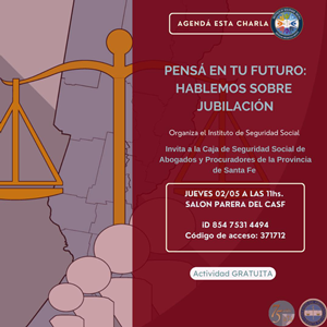 2 de Mayo – «Pensá en tu futuro: hablemos de Jubilación» – Charla organizada por el Instituto de Seguridad Social